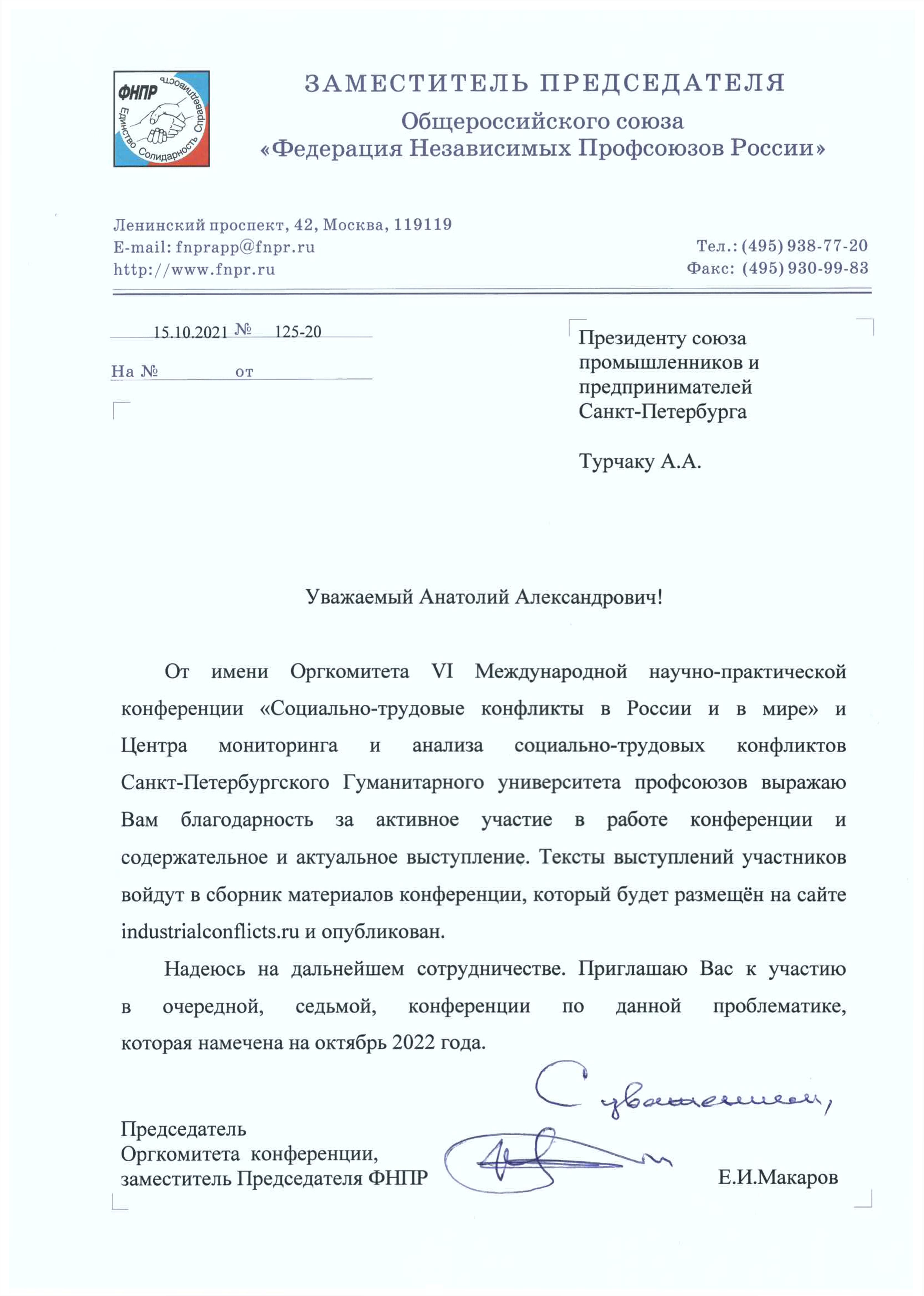 Заместитель председателя ФНПР выразил благодарность А.А.Турчаку за участие в конференции по социально-трудовым конфликтам